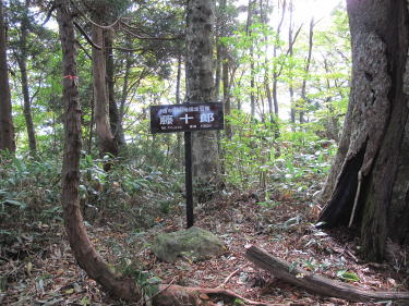 | F10から上はゴーロの谷になる。尾根に取り付いて中三ツ倉東尾根の登山道に上がった。数㍍先のササの中に熊さんの気配。そーっと通らせてもらう。東に200m、見慣れた藤十郎の標柱があった。藤十郎を北に折れて7分ほど下った所から登山道を棄て、西側のウラオレ谷源流域に降りた。東側は植林帯、西側は闊葉樹の明るい谷である。水流は細い。少し下って、磧に腰掛けて昼食(12:09/25)にした。 | |