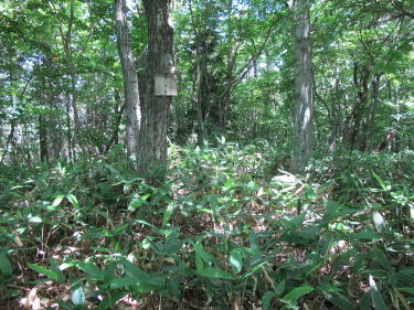 | 太田川森林組合のぬくい工芸センター温井工場前に車を駐める。R186に出て、王泊方面に向かってすぐの林道に入る。15分計り上がって、左の大箒線を辿る。かつてあった山道の取付が見つからない。しばらくすると後温井谷左岸に道があるのでこれに入るが、間もなく道は消失。左岸尾根に這い上がると林道に出た。林道を20分計り行くと左手にA峰北尾根への取付があり、そのすぐ先で枝尾根沿いに径が下っていた。オオホウキ谷の林道に出るものと思われる。A峰北尾根の径は最近整備されたもので、作業用のものかもしれない。稜線に上がると後温井谷左岸斜面が伐採されて開けていた。A峰から大箒山に渡り、タタラ路を辿ってD峰に至る。ひざ下までササがあるが踏跡は明瞭で、難はない。床尾山への径はかなり茂ってきている。床尾山西峰の西側が開けて、深入山の美しい山容が望まれた。この山行唯一の展望である。床尾峠に降りると作業道が上ってきており、965m峰から高岩倉山の東面にかけてジッグザッグに伐採作業道が付けられている。E峰からしばらく大ヤブが続くが、大平山の北東尾根に上り返した辺りから闊葉樹の疎林に変わる。大平山の山頂も腰までササに覆われた闊葉樹林帯である。昼時ではあるが、とてもここで食べる気にはなれず、東に尾根を下って林道に降りた。こちらも夏草が茂っているため、高岩倉山の南尾根を過ぎた辺りまで戻って、ようやく遅い昼食を取る。気分爽快とはいかないまでも、それなりに満ち足りて林道を下る。30分で県道305号線に出て、温井越えの里道を辿り起点に還った。 |