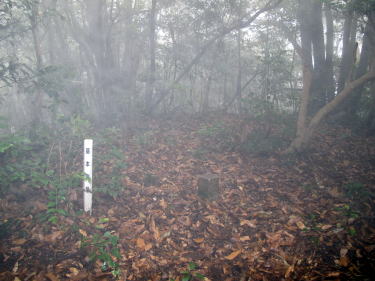 | 周南市大神(だいじん)の地域交流センターに車を駐める。法師ヶ岳南尾根に取り付くため、国道489号線の神大バス停の先から神上(こうのうえ)神社参道に入る。神代橋を渡って200m計りのところに社殿があった。境内右横の小径に入るが、すぐに終わり、左手の急斜面に取り付く。尾根に上がると、高圧線鉄塔(南陽線26)が建っていた。その上に道はなく、暗い照葉樹林の中に真竹や女竹が繁茂して相当に荒れている。おまけに小雨まで降りだして、カメラは思うように機能しない。昨夏ちょこっと水没させたので、かなりヤバイ状況になっているのかもしれん。この際、なだめすかして撮るしかない。ようやく頂稜に上がると、シェルターのような廃屋がヤブに埋れていた。法師ヶ岳の三角点は東の肩にあることが分かり、確認に引き返す。頂稜に戻って北に向かうと、廃道が現われて、その上に大観音像が立つ山頂広場があった。霧の中に慈母観音立像の大きなシルエットを見る。晴れていればさぞ見晴らしのよいことだろう。北面の車道を400m計り下ったところから、四熊嶽神社の参道に取り付く。一の鳥居、二の鳥居、不動明王石仏と続き、15分で四熊嶽神社、その裏手に四熊ヶ岳の山頂があった。どうしたわけか、旧海軍省の標石に野球のバットが立てかけてある。うーむ。道は北面の高圧線鉄塔(JR西日本新徳山線23)までで、その先に二万五千分の一図にある破線径はない。照葉樹林の北尾根を下ると、牛舎の裏に出た。無断で立ち入るわけにもいかず、西に回り込むと未舗装の林道があった。これを北に辿ればよいものを、読図を誤り徳山国際カントリー倶楽部のカート道に迷い込む。クラブハウスの前で金色の大観音立像を拝することができたので、結果オーライだったのかもしれない。市道奥四熊線を辿り、峠越えをして国道489号線に出る。100m計り下って嶽山北尾根に取り付く。枝尾根に上がると踏跡があり、難なく主尾根の送電線管理道に合流した。高圧線鉄塔(南陽牟礼線7)の下で遅い昼食を取る。南側の鞍部を陶の道が通っており、これを横切って嶽山北東峰に上る。南面が開けて、新南陽の町なみやコンビナートを一望できる展望所になっているが、霞んで殆ど見えない。仙島、黒髪島は言うに及ばすである。嶽山山頂の展望も同様で、早々に北東峰に引き返す。当初、下山は北東に下って、東に流れる尾根を辿るつもりであった。が、またしても読図を誤り、というか北東峰から南東に下る登山道に吸い寄せられてしまう。昼前までの雨でよく滑る急坂ではあるが、よく整備された道で、カシやタブの巨樹たちにめぐりあいながら、麓に降りた。 |