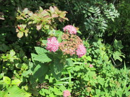| 久しぶりのカミサン孝行。三瓶自然館サヒメル駐車場に車を駐める。三瓶自然館裏手の新館駐車場から、姫逃池(ひめのがいけ)コースに取り付く。カラマツ林の中を20分計り上がると、東屋の建つ広い場所に出る。男三瓶山の北斜面が崩落してできた堆積台地と伝えられている。粟畑(あわばたけ)と呼ばれ、昭和50年頃まで和牛の放牧が行われていたという。程なくして中国自然歩道を横切る。ここからは、火山特有の急な立ち上がりとなるが、道はジッグザッグに開かれており、さほどの急登感はない。頂稜近くの標識にあと5分と表示されているが、10分を要す。参考タイムとしては、ちょっと短いのではないか。結局、登山口から1時間20分で男三瓶山頂に達した。山頂神社が少し東側に建て替えられていた。早速、お参りする。山頂に日差しはあるものの、見晴らしは今一つ。北面に雲が湧いて日本海は見えず、南方の山なみもおぼろである。お弁当を食べ終わるころに、雲の切れ間から北の原を見ることができ、大満足。東肩の草原で草刈りをしておられる方が5人。聴けば、この炎天下を女三瓶から縦走路を刈り上がってきたとのこと。皆さんに感謝して女三瓶へ向かう。道々、ギボウシ、ウツボグサ、サンインフウロ、名残りのシモツケなどに出会い、ユートピアと兜山から子三瓶、孫三瓶を眺めやる。このルートには急な岩場が三か所あるので、下りに選ぶと思いのほか煩わしい。女三瓶山の展望台から三瓶山を顧みる。連座する男三瓶、子三瓶、孫三瓶の姿は、夏の雲を背にして清々しい。女三瓶山からは、北尾根の径を下る。あまり使われていないようで、取付付近は少々茂っている。電波塔北端の下あたりの掘割道は、クロモジのトンネルになっていた。程なく灌木のヤブはうそのように消え、ブナ林の穏やかな道を下って行くと、トイレが建つ舗装路終点に出た。北側に道があり、入ってすぐのところで名号(みょうごう)コースの道が左に分れていた。道はいっそう穏やかで広くなり、ミズナラやブナの他にケヤキなどの巨樹も混じる、素敵な広葉樹林帯になる。鳥たちのさえずりが盛んに聞こえているが、サンコーチョウの「ピーチャポイ、ホイホイホイ」は無かったような気がする。自然歩道の西の原分岐から10分余りで名号コース登山口に出た。そこは青年の家(国立三瓶青少年交流の家)の前で、右に500m計り行ったところに「指書の名号(ゆびがきのみょうごう)」があるらしい。今回は割愛する。左に500m計り行くと、三瓶自然館の新館駐車場の入口だった。 |
