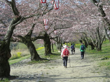 | サクラのお花見、ということで岩国城山に出かけた。整理料金200円を納めて横山河川敷駐車場(錦城橋の下)に車を駐める。桜はまだ五分咲きというところだが、好晴の日差しを受けて見る見る咲きそろっている。花に精気があふれ、満開の桜に劣らず美しい。柳の若葉やカラシナの花が色を添える錦川右岸の桜並木をポレポレ歩く。この河川敷遊歩道は約250mで終わる。土手の市道に上がって南に200m計り行き、展望台登山道(姉ヶ山東尾根)に取り付く。途中の近之森稲荷は、錦帯橋と河川敷桜並木のビューポイントである。また、取り付いた尾根の突端にも展望地があって、錦帯橋と城山(横山)が一望できる。尾根道の中ほどで満開のミツバツツジに出会う。取付から35分で展望台に達した。カミさんと後期高齢の叔母二人、まだまだ達者である。春霞で展望台の眺めは今一つで、錦川デルタの沖に甲島などの島影が薄っすら見えるだけ。姉ヶ山の三角点にタッチして、北尾根の道を横山に向かう。途中、天明3年(1783)、城山を鎮めるために祀られたという護館神をめぐる。御本尊は樹林が取り囲む奇岩峰の岩屋に安置されており、あたりに霊気が満ち満ちている。護館神分岐から先は広い道(電波塔の管理道)になる。750m計り行くと城山登山道(舗装道路)に合流し、からくり時計が建つロープウェイ山頂駅に出る。さすがに山上の桜はまだ蕾んでいる。大釣井(おおつるい)、二の丸跡、復興天守、旧天守台、空堀、北の丸散策道などをめぐって、横山南東面の径に下る。取付から15分で吉香公園日本庭園に降りる。すぐ下の城山花菖蒲園で、桜の花を見ながら弁当を食べる。しばし歓談のあと、園内の桜見に興じる。たびたび訪れていても新しい発見はあるもので、吉香神社二の鳥居の上手で変わった狛犬を見かける。御土居(おどい)南東側のお堀の景色を感歎して眺め、河川敷に還る。そこでは、すっかり咲きそろった桜が大勢の花見客を幸せにしていた。 |