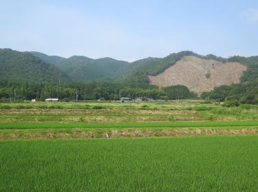 ![]() 下深山から野道山(奥) 伐採斜面上端より(8:56) |