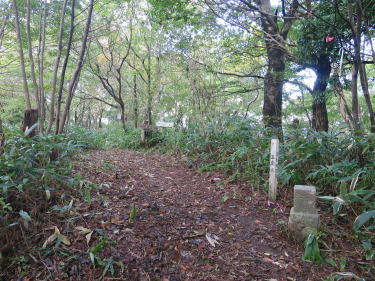 | 先週、窓ヶ山の北登山道から眺めた東郷山東尾根(境界尾根)を辿る。野稲原(のいねばら)地区の私道が出合う歩道(県道77号久地伏谷線)空間に車を駐める。南に450m計り行き、バス停戸山車庫の前を右折。法隆寺を左に見て里道を上がって行くと、程なく集落は途切れ、大谷川右岸に沿う舗装林道になる。1㌔計り先に「渓流の滝」と名付けられた多段滝、その300m先の二俣左谷に「まきおの滝」、右谷80m上流に「五段返しの滝」がかかっている。「渓流の滝」はともかく、まきおの滝と五段返しの滝は見事なスラブ滝で、登れば愉しそうだ。舗装林道は五段返しの滝の下で終わり、すぐ下に東郷山への登山口がある。10分計り上ると、再び二俣になり、右谷に直瀑F1、右谷少し奥の二俣左谷に斜滝F2を見る。山道は奥の二俣右谷に続き、300m計り先で東郷山東尾根から南に流れる枝尾根に取り付いている。闊葉樹の尾根道はけっこう急で、大汗をかいて新西広島幹線103の送電線鉄塔に達す。周りの木が育って見晴らしはよくないが、きれいに刈り払われて、一息いれるにはちょうど良い。そこから先は送電線巡視路になるので、よく整備された遊歩道を行く心地になる。巡視路は稜線手前で左右に分かれ、横手に巻いている。まずは左に取って、東郷山山頂にご挨拶。東郷山の頂稜とその北面には、スギ、モミ、ブナの巨樹が残っており、広島市近郊にありながら奥山の雰囲気が味わえる。分岐に戻って、境界尾根を東に辿る。送電線巡視路は、南面を横手に行くところもあるが、概ね尾根筋に付けられている。途中のピークには送電線鉄塔が建って開け、窓ヶ山連山を樹木越しに眺めることができる。東郷山山頂を折り返して1時間余り、尾根は急な岩稜になって鉄階段が取り付けられている。送電線巡視路ならではのものである。楽ちんをして降りた鞍部が大峠(おおだお)で、十字路になって左は湯来町和田、右は沼田町上垣内(うえがいち)に至る。大峠を上り返した792m峰に新西広幹線98の鉄塔が建っている。ススキが茂っているが、穂先越しに東郷山や窓ヶ山が眺められる。ここから境界尾根は北に転じる。下って行くと、左手に作業道が付けられ、二ツ山の西面に続いていた。792m峰から先の境界尾根に巡視路はないが、除間伐されて間がないヒノキ林の中の踏跡は明瞭である。が、それも二ツ山の手前までで、二ツ山三角点はヤブに囲まれていた。ここで境界尾根は再び東に転じ、スギ林の下生えが茂りに茂ってくる。ヤブを漕いで北の肩まで下りると、踏跡が現われた。蘇って急斜面を木登りで下る。二ツ山から40分余りで不明峠(あけずだお)に出た。県道71号広島湯来線のつづら道を短縮してみたが、蜘蛛の巣だらけの荒れ径で難儀する。その下でも破線径に短縮。快適なのははじめだけで、すくに荒れ道になる。結果、難儀したわりには時間短縮にならなかったが、ごみ埋め立て反対運動の記念碑「環境保全の碑」にめぐり会えたことで、良しとしよう。 |