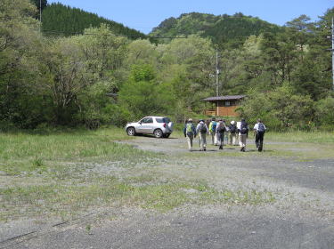 | 横手道は約480mで終わり、北支尾根に上がる。ふたたび登りの始まりであるが、闊葉樹の尾根径は心地よい。と言っても、夏日の暑さが堪えるらしく、10分後には休憩要望が出される有様。そして、その後も10分ごとに大休みして、ようやく山頂に到達した。登山口からの所要時間1時間48分、うーむ、想定内だ。証拠写真を撮って、南頂稜の展望所まで足を延ばすが、風があるので猫山山頂に戻ってグルメパーティー。今回のメニューは、「串揚げ」。ちなみにネタは、コゴミ、ブロッコリー、ピーマン、アスパラガス、シイタケ、ジャガイモ、ちくわ、ホタテ、ウインナー、ニワトリ、ブタなど、だったと記憶している。買い出しから下ごしらえを一手にやっていただいたF会長に感謝、感謝である。最高に幸せな気分で、美味しくいただき、完食。もうこれ以上は望まないという顔のみんなの尻を叩いて、南峰へ向かう。約20分で南峰に達し、南面から東面にかけて広がるパノラマ風景に親しんでもらう。箱庭のような小奴可の田園風景、比婆山連山、白滝山、三国境の山々など、同定してみせるが、みんな聞いているふうはない。一息入れて本峰に戻り、あと片付け。軽くなったザックを背に、ルンルン気分で下山。リフト終点からは、ゲレンデを歩かせてもらって起点に還った。花の猫山で、トキワイカリソウしか見かけられなかったのが、ちょっと残念。 | ||
