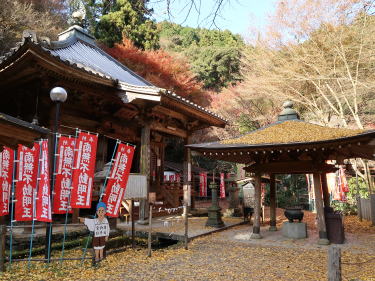 | 時間に多少ゆとりがあるので、この際、瀧塔山(ろうとうざん)龍蔵寺を訪ねてみた。こちらもすでに落葉がすすんでおり、参道は紅葉、観音堂の前庭は黄葉の絨毯、という有様。これも風情があってよいが、落葉がはじまる前の樹々の様子を、ぜひ見てみたいもの。またの機会ということにして、帰路につく。 | ||