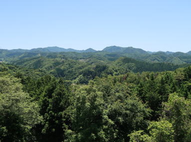 ![]() 沖の郷山、兜山など 管理棟北の登山道より(12:47) |
