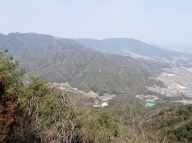 ![]() 野貝原山(左)、極楽寺山 展望岩寄り(13:21) |