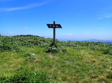| F11を越えると、100mばかり伏流して二俣になる。左谷に入ると、チョロチョロ水流の角方スラブ滝F12に出会う。この後もチョロチョロ水流のヤブ沢が300mばかり続いて、6Fをカウントする。チョロチョロ水流のヤブ沢がさらに200m、ようやく水が途切れたので、右手のササヤブに取り付く。約20分のササ漕ぎをやって、ケルンが立つ登山道に飛び出す。ルンルン気分で十方山山頂に達し、廿日市、安芸太田の山々を眺めながら、至福のバナナ弁当をいただく。 | ||