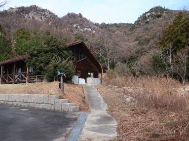| 蒲刈市民センターを過ぎて宮盛港湾に入ると、左手に小松島、大松島の景色が広がりはじめ、赤石の突端で荷島に出会う。岬を回ったところに日高神社、その先の大浦バス停に至れば、砲台跡は指呼の間。営農センター前から約500m、右から農免道が合流、その先で左の市道大越深浦線に入る。角にふるさと自然の道の案内標識がある。 | ||