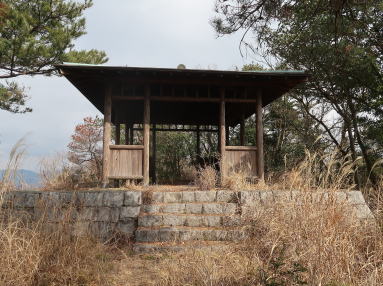 | 高天原神社の鳥居前から遊歩道に取り付いてひと上り。出合った分岐を右に取るとすぐ、日佐護山の山頂。休憩ベンチがあるだけで、山名札も展望もない。分岐に戻って左に取ると、開けて、少々くたびれた展望東屋がある。南東面180度に安芸灘のしまなみ風景が広がっている。 | ||
