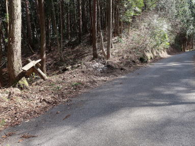 | 県道を左(南西)に取る。行く手の谷あいに収まっているのは、市間山と鍋山。交通量の少ないのどかな2車線県道をポレポレ下る。途中には、円光寺、寺領(じりょう)の柿団地、大歳神社、才中得(さいなかえ)の地蔵堂、与一野(よいちの)のしだれ桜、那須与一の墓など見どころが多い。与市野橋を渡り、上殿(かみとの)地区へ入ったU字カーブが岩田BSで、先だって取り付いたところ。ほどなく幅員が減少して、渓谷道になる。起点まで、もうひと下り。 |