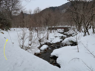 | 県境稜線を南へたどり、五里山へ。ボーギのキビレを上り返してから1168峰までが、なんと長く感じられることか。老杉に再会して1168峰のてっぺんに着いたのは、もはや12時前というありさま。1168峰東面には、かつて素敵な展望が開けていたが、樹木が育ち、今それは叶わない。帰路のことを思うと、京ツカ山までピストンする気にはなれず、昼食を済ませ東支尾根へ下る。焼杉山や十方南西尾根を眺めながらのスノーシューイング、なかなか愉し。約30分で十方林道に合流、長ーい苦難の歩行がはじまる。下山橋、斜滝、水越峠を経て、起点に着いたのは15時を過ぎていた。展望ピーク1158峰まで足を延ばすには、出発を1時間早める必要がありそうだ。 | |